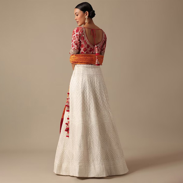 Lehenga CholiWhite, red & yellow embellished lehenga choli with dupatta,